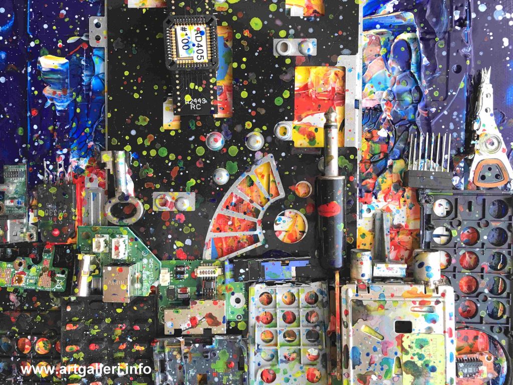 Materials: acryl på lærred; elektrisk genbrugsmateriale